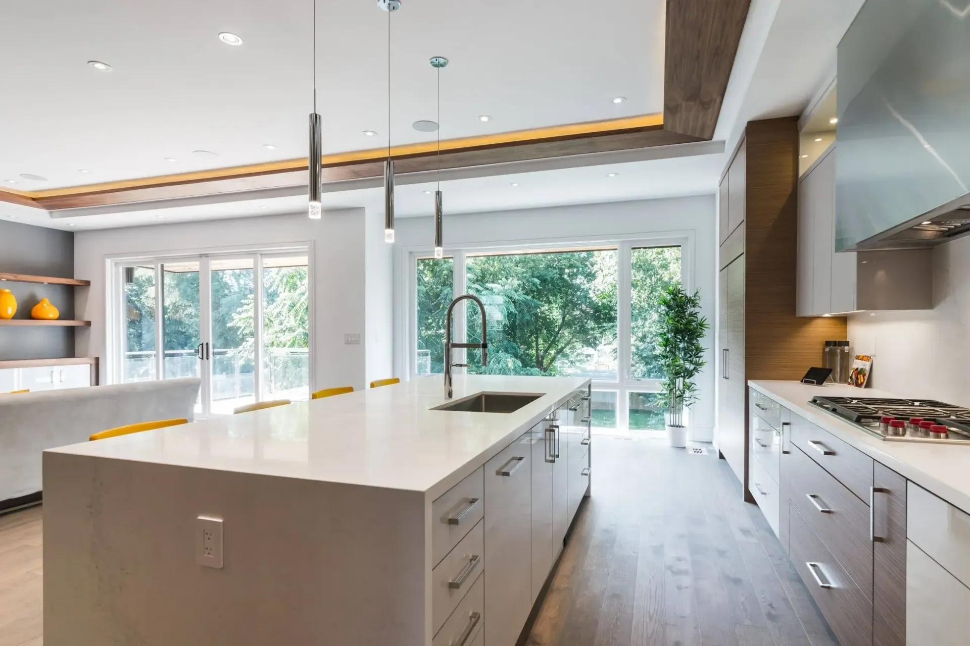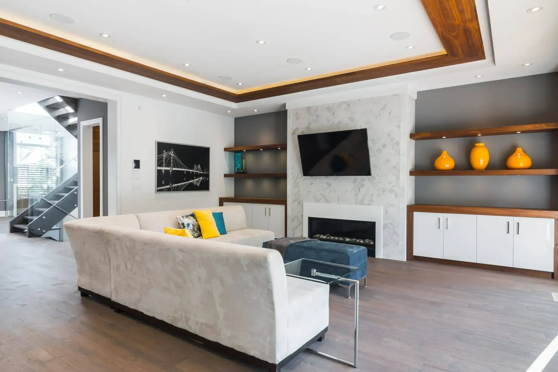 The Cedar project, completed by Modinno Dwellings, was a comprehensive transformation of both the exterior and interior spaces of the home. This renovation showcased the seamless blend of modern design with functional elegance. Inside, sleek wood panel flooring added warmth and sophistication, while the stair rails made of glass introduced a transparent, open-air feel, allowing light to flow throughout the space. The kitchen and bathroom underwent a modern contemporary remodel, featuring clean lines, high-end materials, and state-of-the-art fixtures, enhancing both aesthetics and functionality.