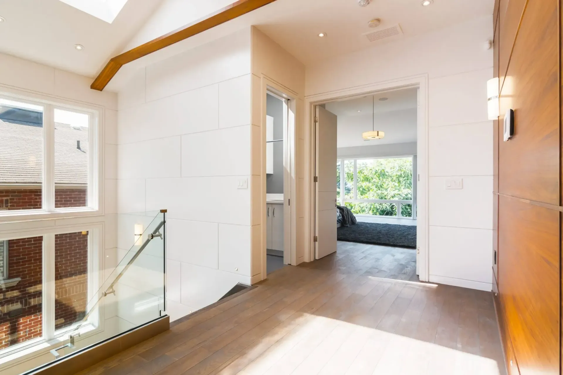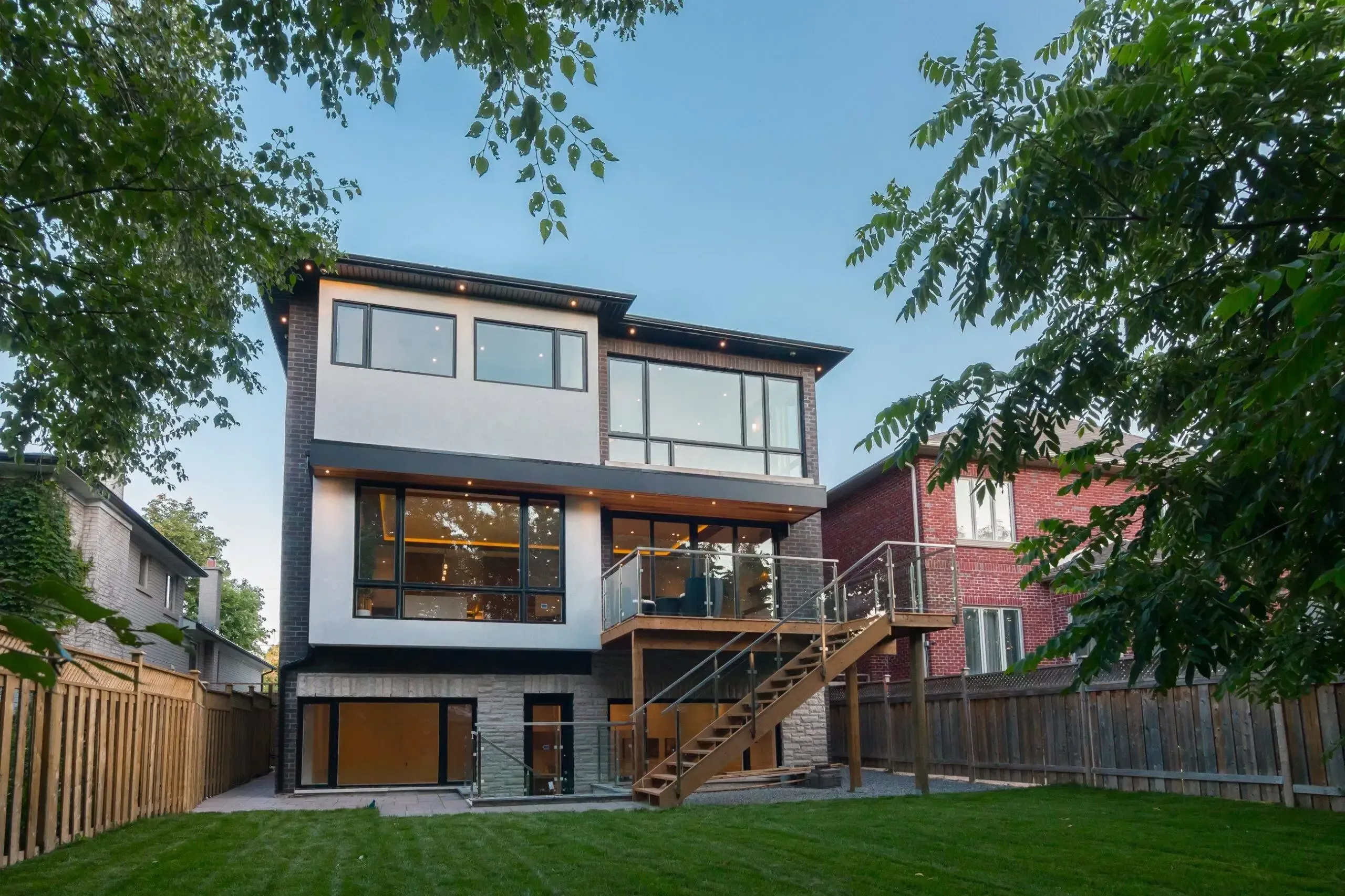 The Cedar project by Modinno Dwellings was a full renovation that transformed the home’s interior and exterior with a modern touch. Inside, wood panel flooring added warmth, while glass stair rails enhanced the open, airy feel. The kitchen and bathroom were upgraded with sleek, contemporary designs, featuring high-end finishes and modern fixtures. Outside, a new balcony expanded the living space, complemented by a stylish backyard addition. This project perfectly captured Modinno Dwellings’ ability to blend aesthetics and functionality in a modern home renovation.