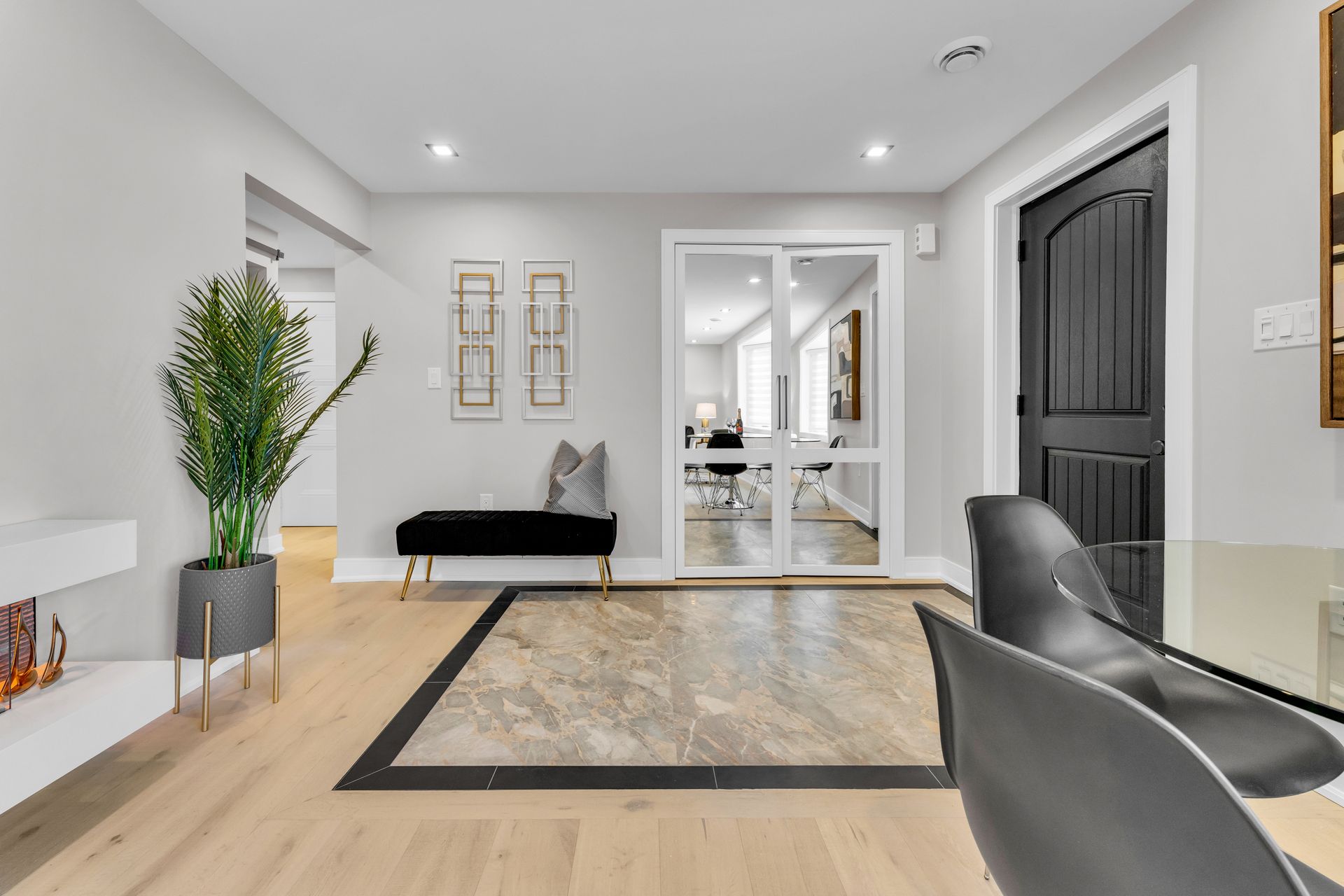 The Court Crescent Home renovation was a stunning transformation, blending exterior and interior updates with a modern vintage design. On the outside, the home received a fresh facade with classic materials like brick and wood accents, complemented by vintage-inspired lighting fixtures and a charming porch that embraced timeless elegance. Inside, the kitchen was a true centerpiece, combining modern amenities with nostalgic touches—stainless steel appliances, vintage cabinetry, and polished brass hardware, all against a backdrop of classic subway tiles and open shelving that created a stylish yet functional space.