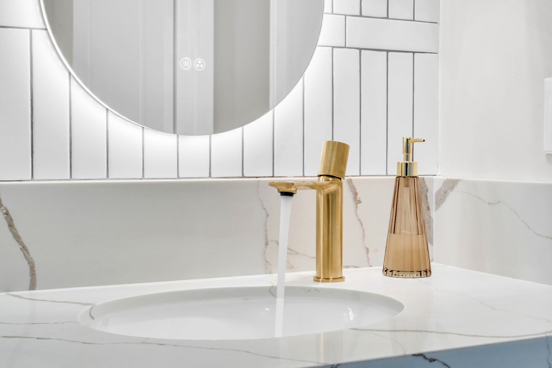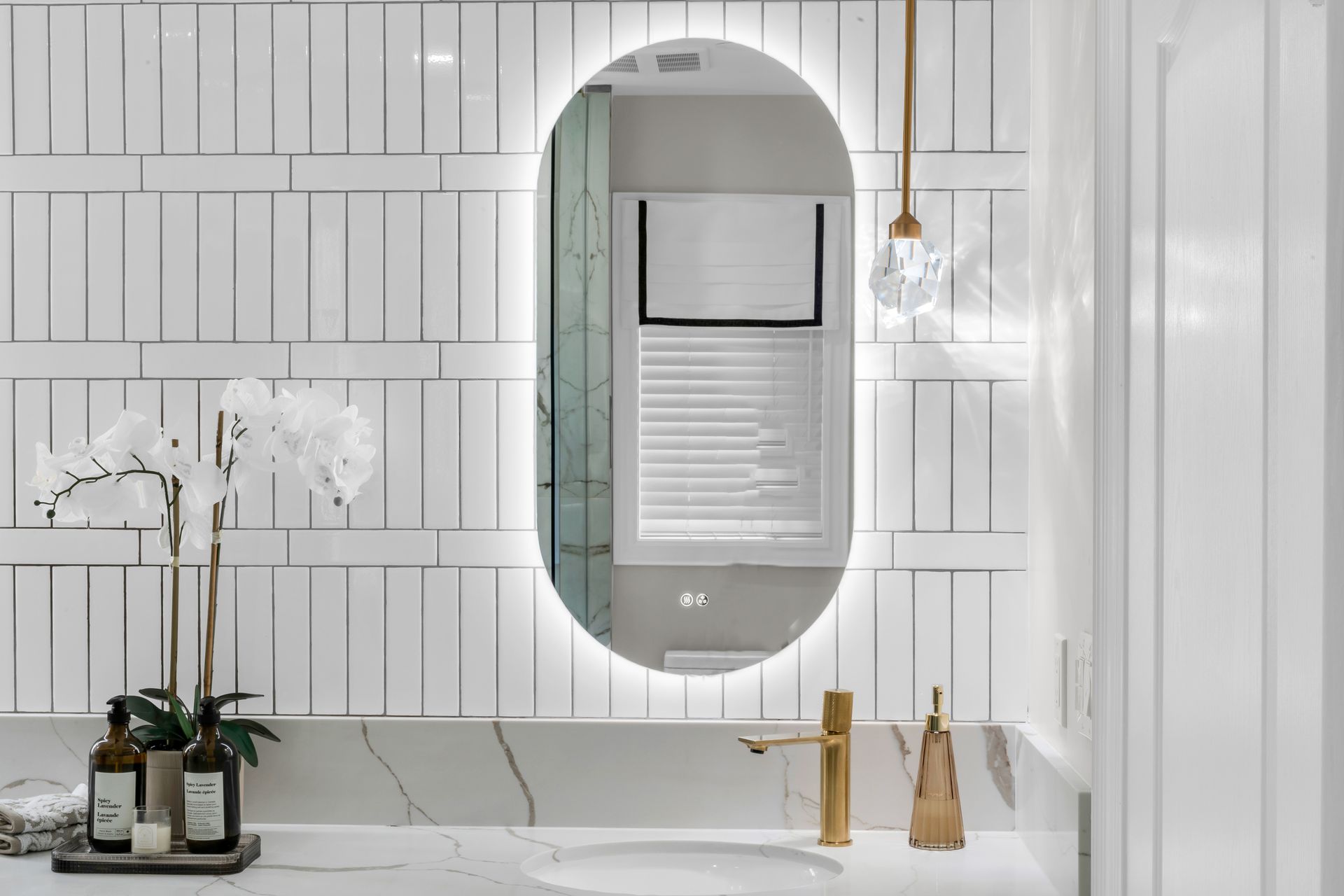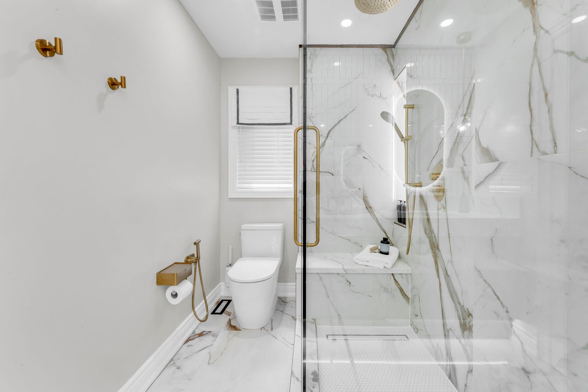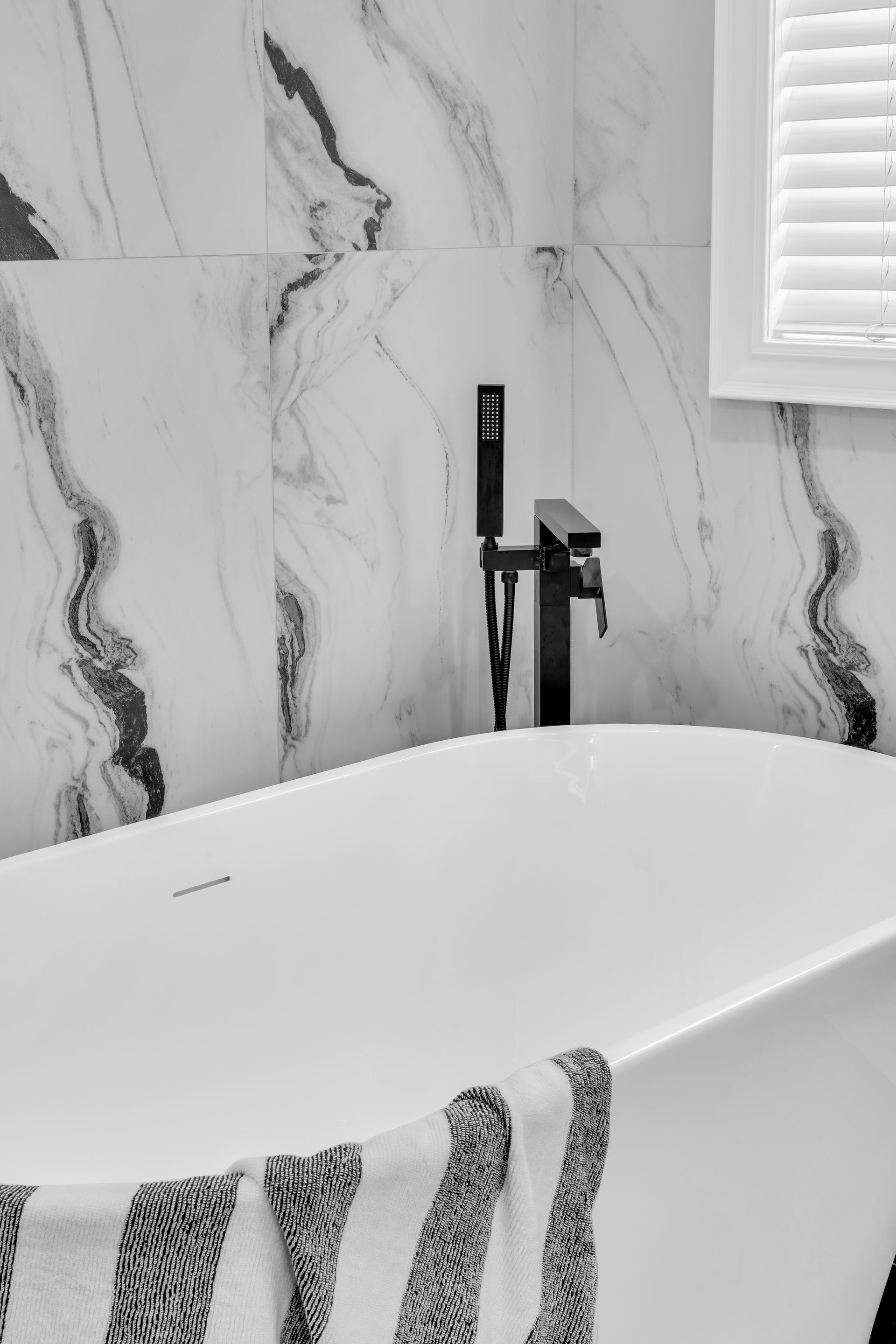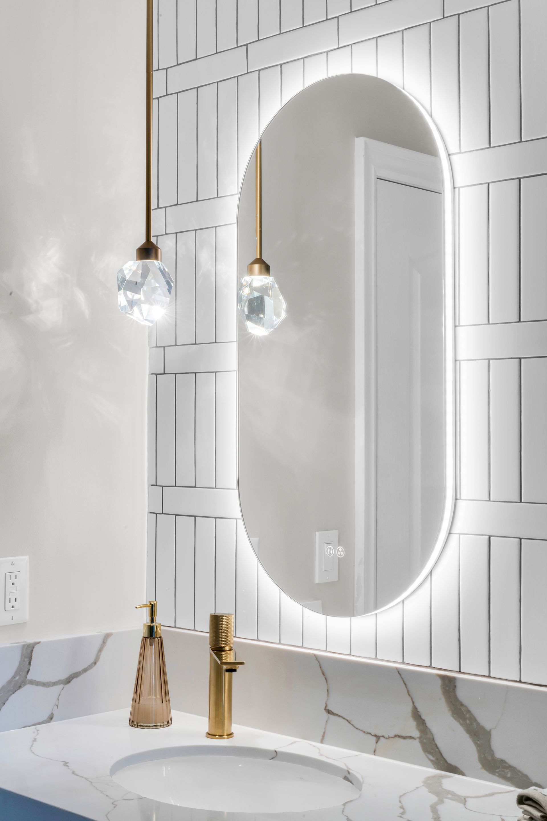 The Seabright project's bathroom and tile remodel focused on creating a luxurious yet practical space. Vinyl flooring was chosen for its durability and sleek appearance, adding a modern touch that complemented the overall design. The flooring was paired with custom wooden cabinetry, which introduced a natural, warm element to the bathroom while offering ample storage and enhancing the room's aesthetic appeal.