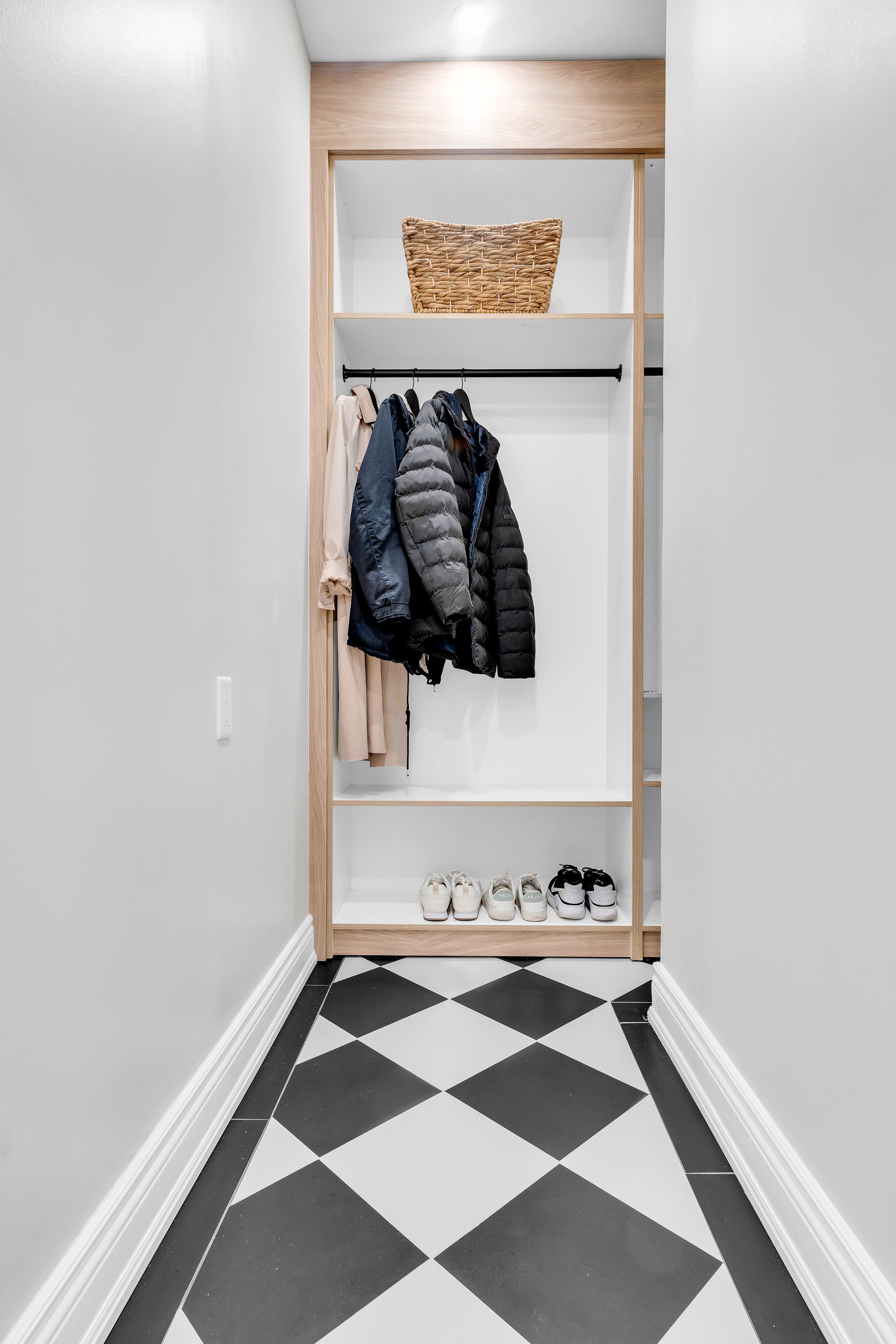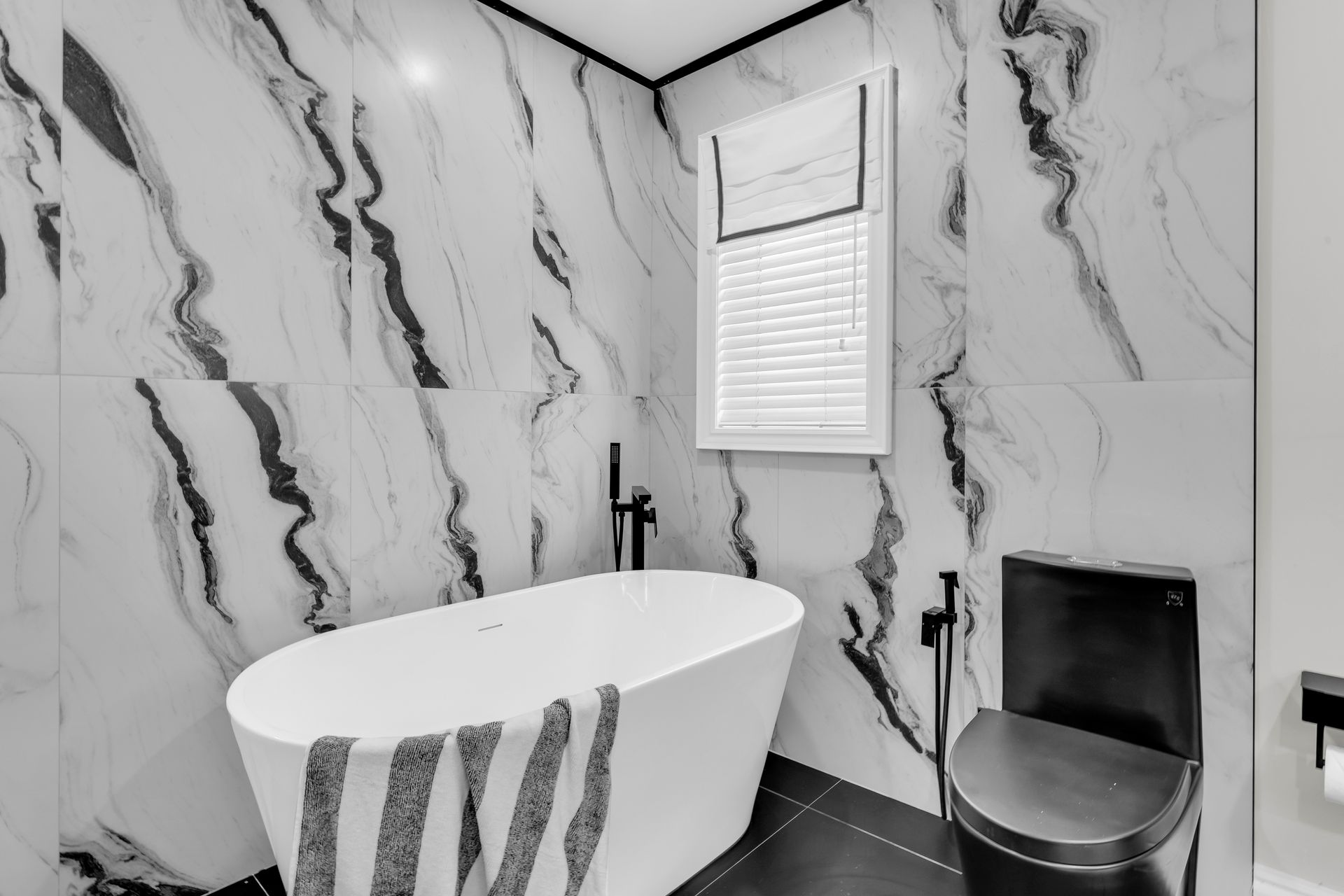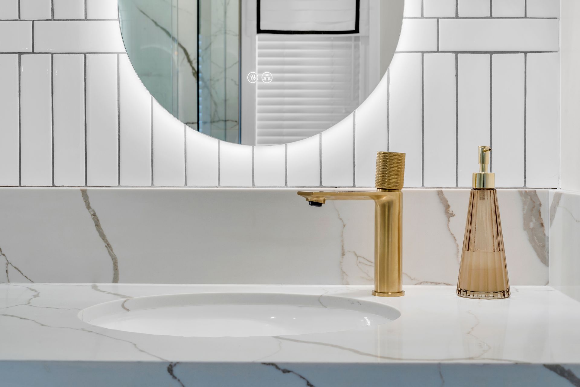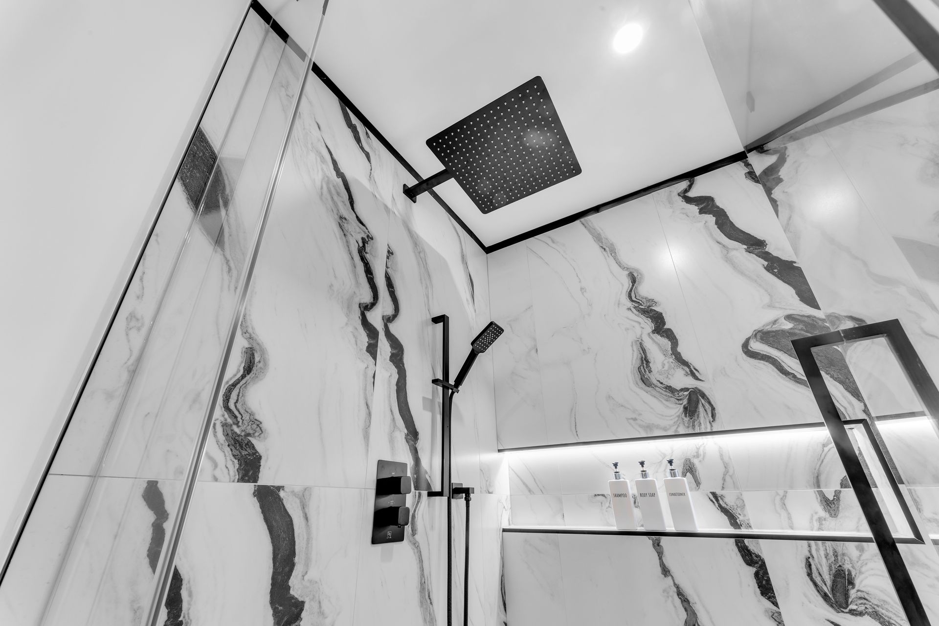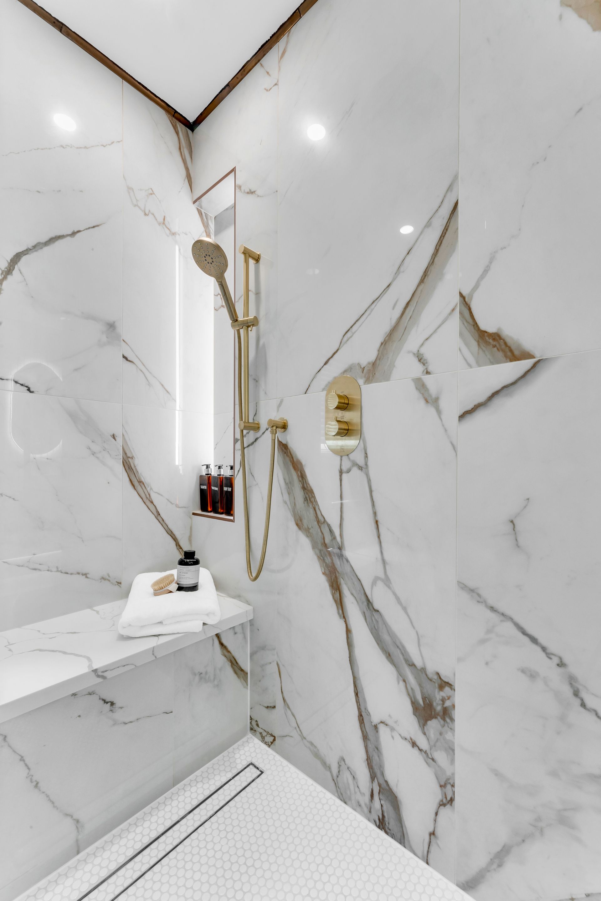 The Seabright project's bathroom and tile remodel focused on creating a luxurious yet practical space. Vinyl flooring was chosen for its durability and sleek appearance, adding a modern touch that complemented the overall design. The flooring was paired with custom wooden cabinetry, which introduced a natural, warm element to the bathroom while offering ample storage and enhancing the room's aesthetic appeal.
