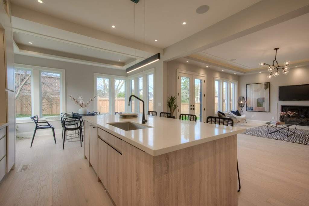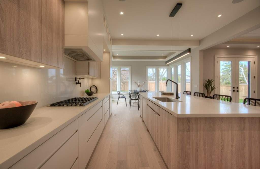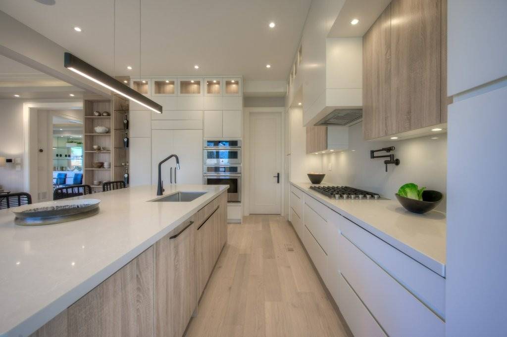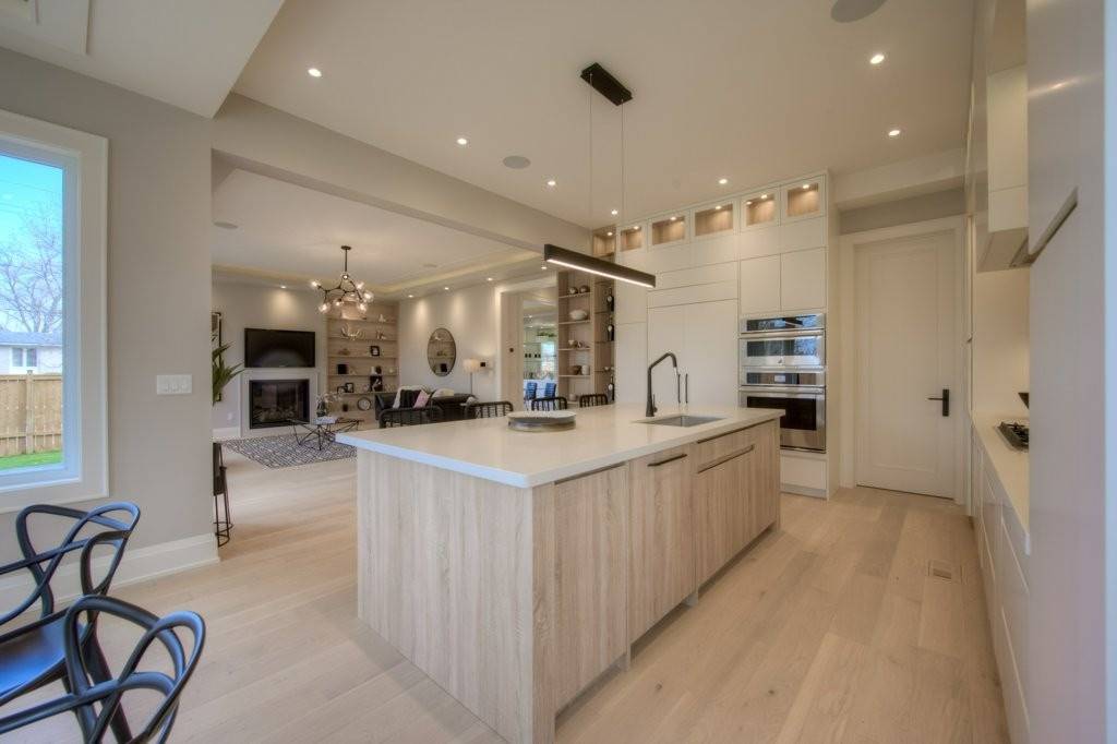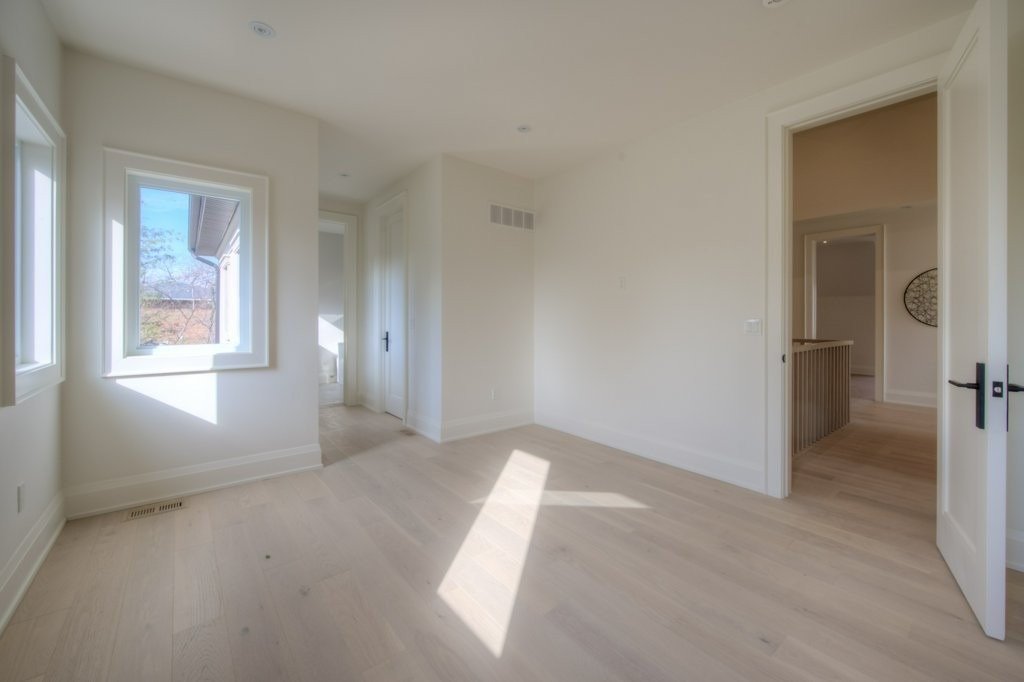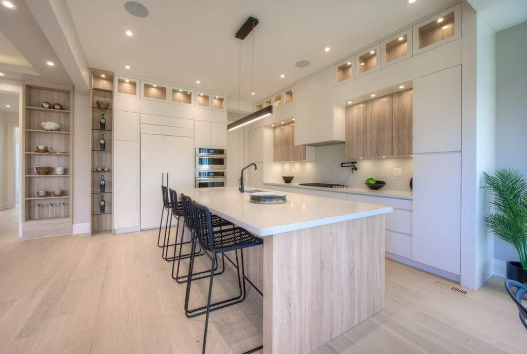 The flooring was paired with custom wooden cabinetry, which introduced a natural, warm element to the bathroom while offering ample storage and enhancing the room’s aesthetic appeal.