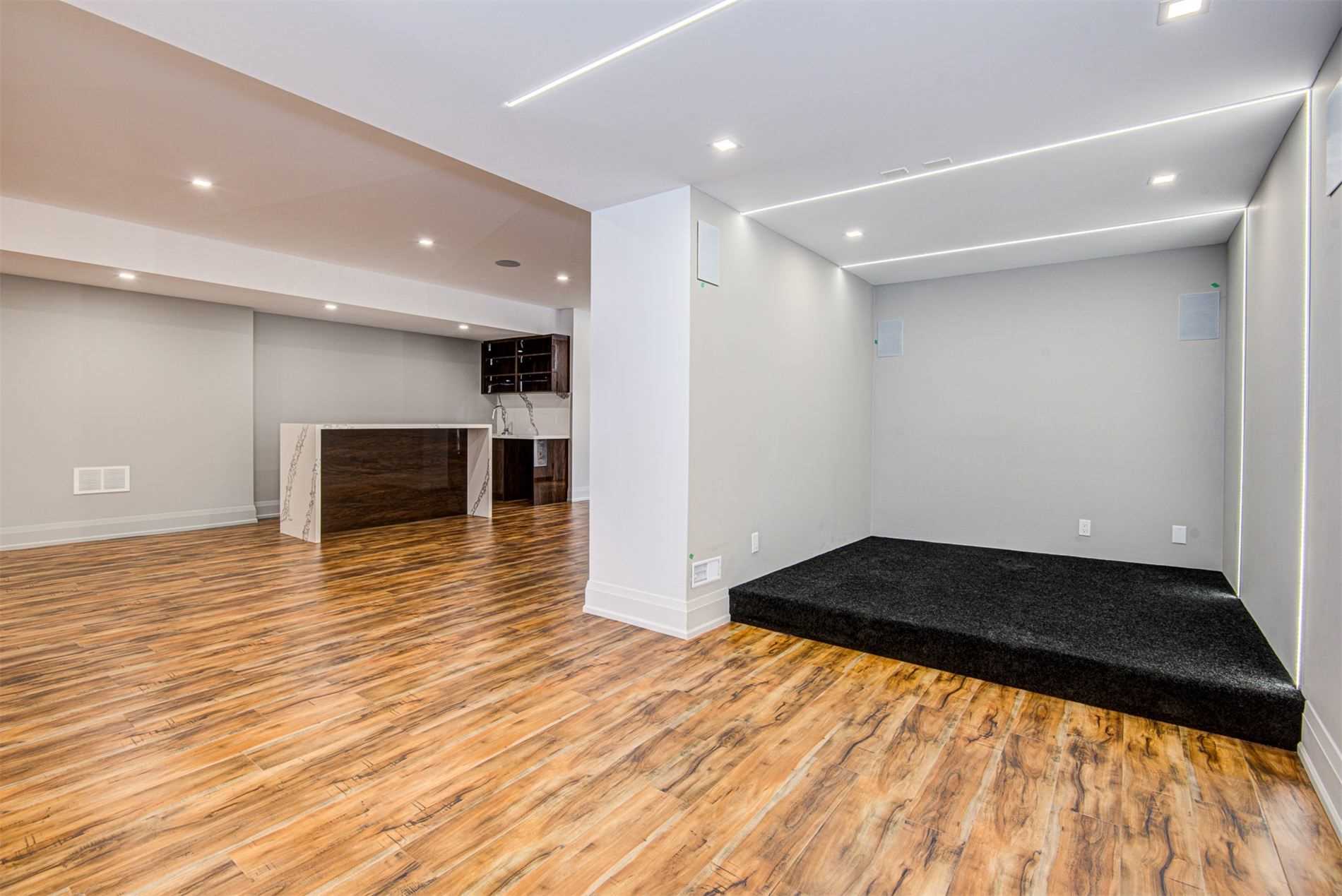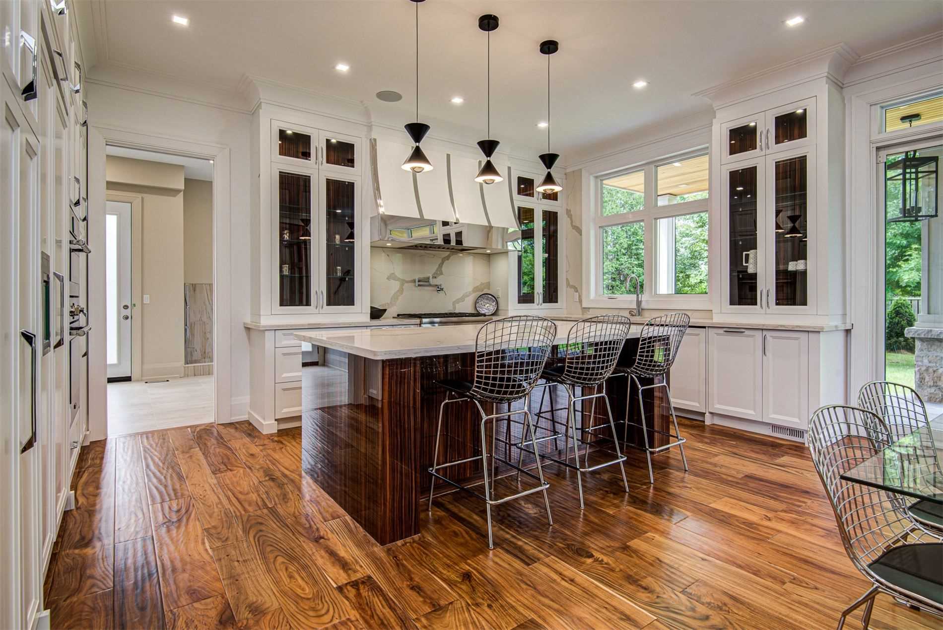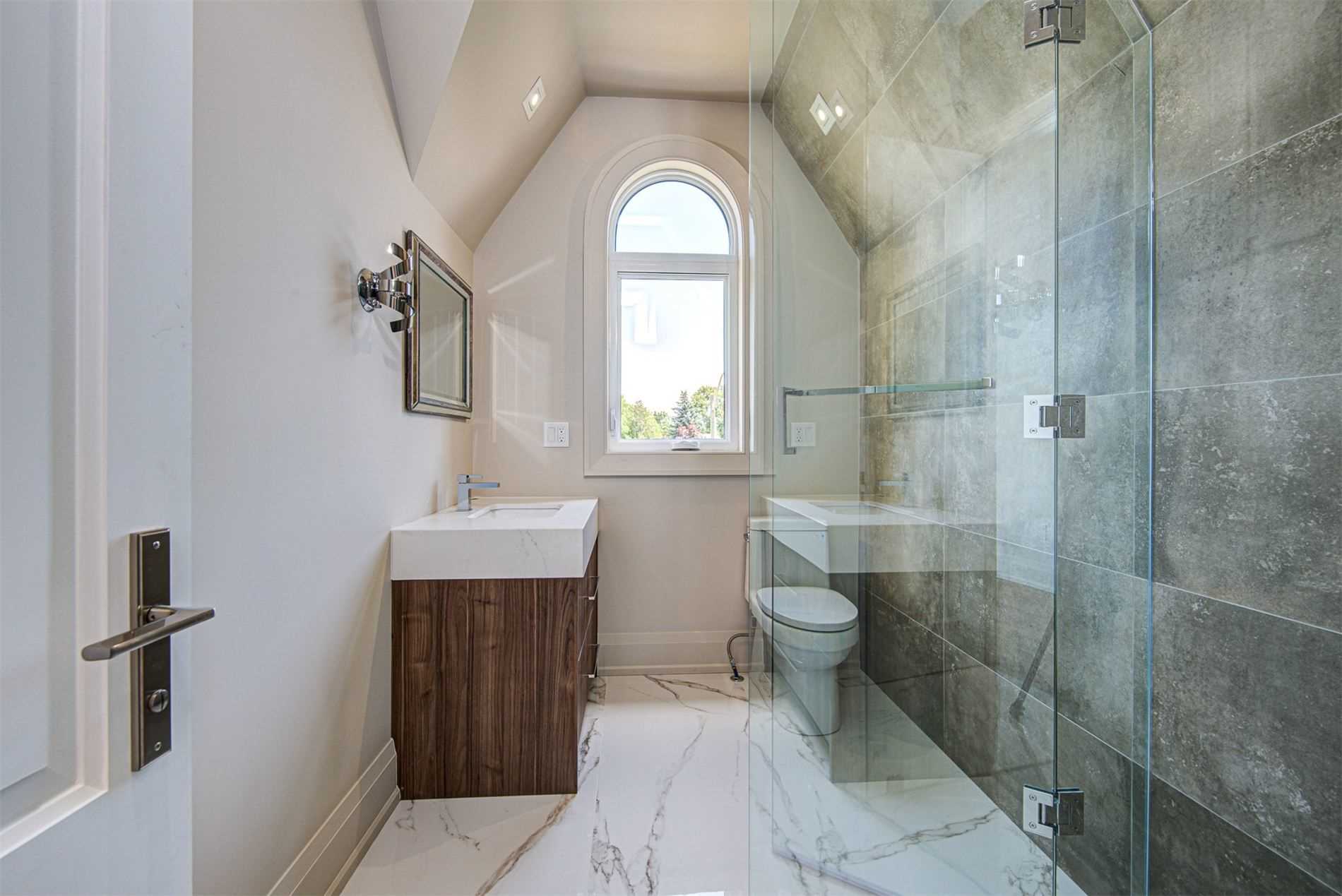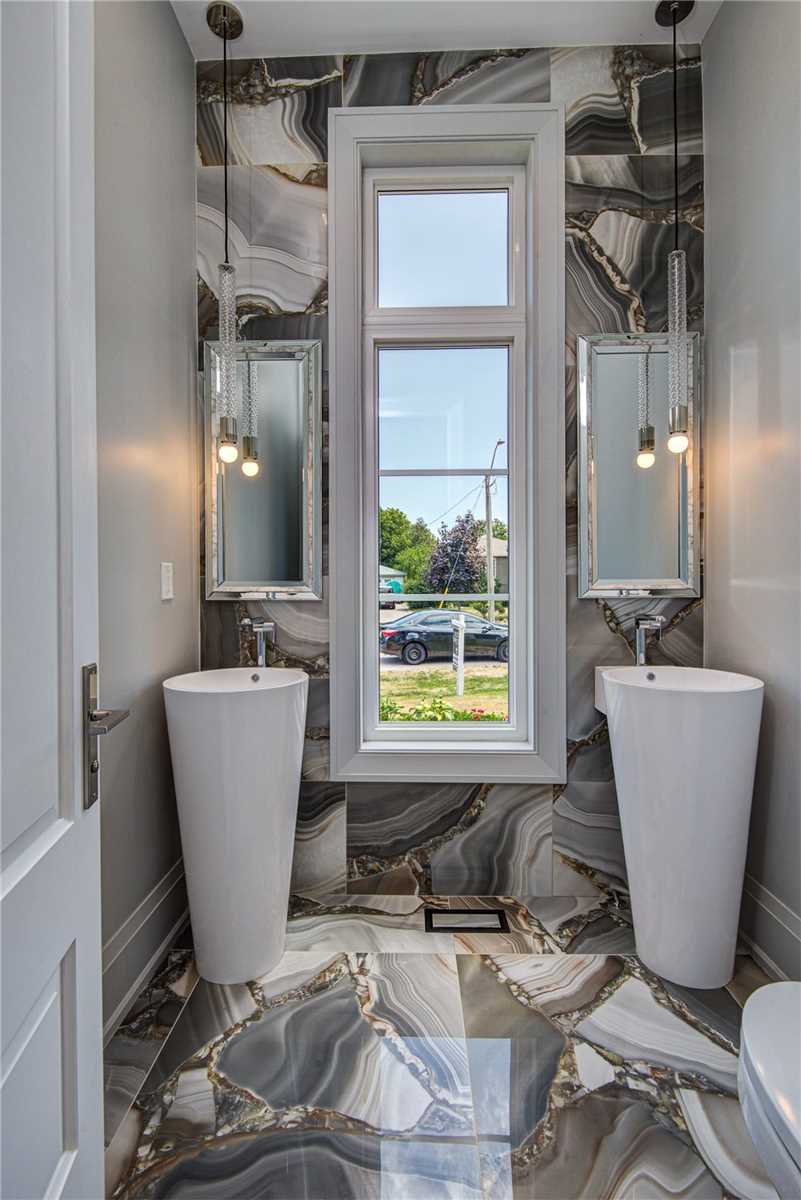 The flooring was paired with custom wooden cabinetry, which introduced a natural, warm element to the bathroom while offering ample storage and enhancing the room’s aesthetic appeal.