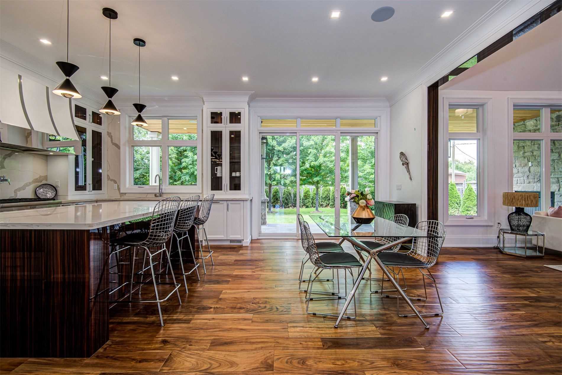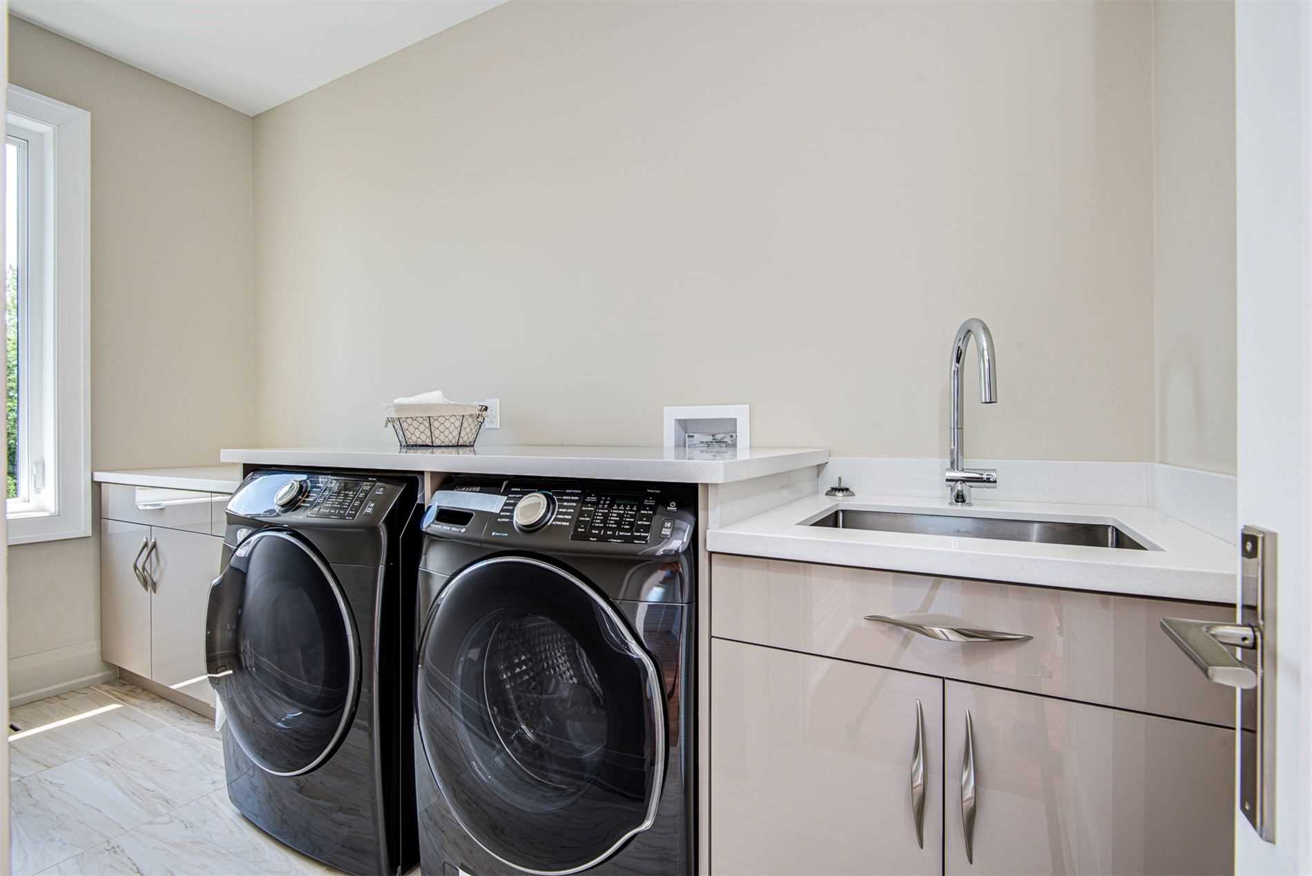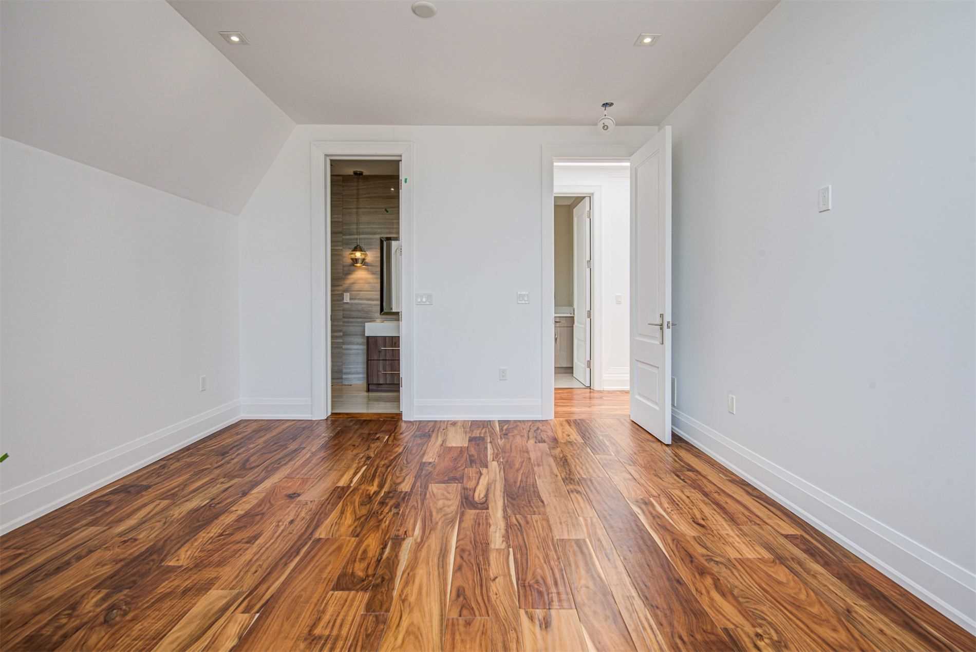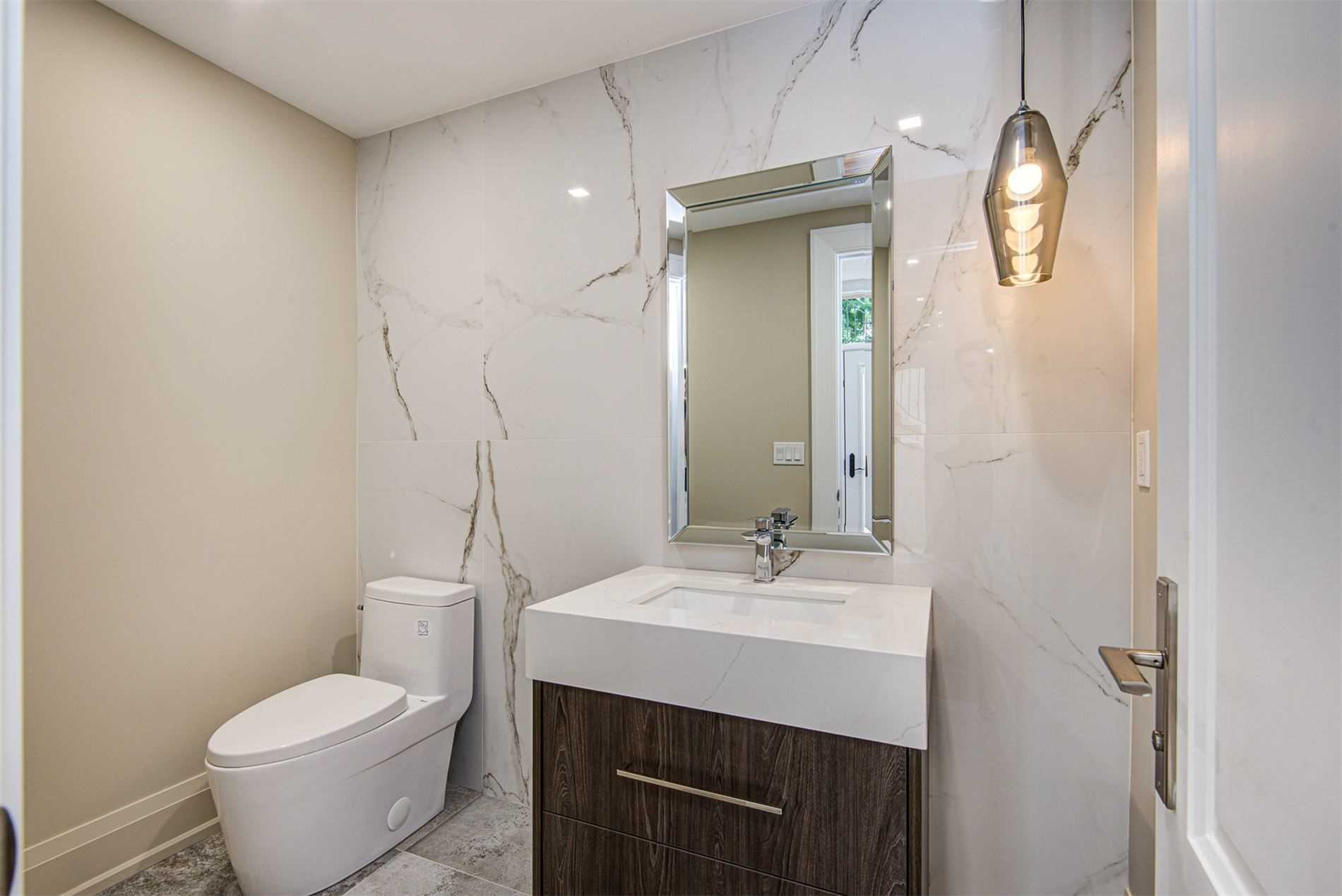 The flooring was paired with custom wooden cabinetry, which introduced a natural, warm element to the bathroom while offering ample storage and enhancing the room’s aesthetic appeal.